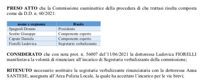 Il candidato è risultato escluso e non potrà sostenere l’orale, non è però l’arrabbiatura a spingerlo a mettere in fila le anomalie che avrebbero viziato lo svolgimento delle prove scritte. A cominciare dalla scelta dei compiti d’esame. La simulazione della stesura di un verbale di somma urgenza, tecnicamente affine a chi ha già maturato esperienze nella pubblica amministrazione, con incarichi politici o professionali come nel caso di tutti i «promossi» alla fase successiva della categoria D. A pensar male si fa peccato e quasi sempre ci si azzecca. Per il candidato escluso, che conosciamo e abbiamo intervistato e di cui non facciamo il nome perché preferisce rimanere anonimo, ci sarebbe stata, nella scelta dei testi d’esame, la volontà discriminatoria di entrare troppo nei tecnicismi della pratica a scapito della conoscenza teorica delle materie d’esame, con l’intenzione di scremare il più possibile la lista dei concorrenti: «È come chiamare a chi vuole entrare in polizia, senza esperienza pregressa, al poligono di tiro e chiedergli dieci centri, è evidente che riuscirà chi si è già esercitato sul campo».