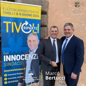 A presentare l’evento è stata l’avvocato Laura Cerroni, già consigliere e assessore comunale, rappresentante della civica «Amore per Tivoli». In sala, numerosi gli ospiti vip, dall’ex sindaco di Tivoli Sandro Gallotti, all’ex consigliere regionale Antonio Luciani; il consigliere comunale di Guidonia Montecelio Alfonso Masini, il coordinatore di Forza Italia di Guidonia Montecelio Maurizio Massini, l’ex deputato di Alleanza nazionale Livio Proietti. Hanno preso la parola, il consigliere regionale e presidente della commissione Bilancio Marco Bertucci di Fratelli d’Italia. «Per esperienza e competenza Marco Innocenzi è l’uomo giusto per guidare Tivoli in un percorso di rinascita che segua le direttrici del turismo e dello sviluppo economico come linee guida – ha detto poi Bertucci in una nota stampa -. Coalizione unita, che conosce bene il territorio, composta da donne e uomini che hanno senso di appartenenza non soltanto politica, ma anche e soprattutto verso la città, che deve tornare ad essere riferimento sia per il quadrante ad est di Roma ma anche per l’intera Regione. Penso al settore estrattivo, certamente, ma anche al turismo, che non potrà che essere al centro delle azioni della prossima amministrazione cittadina. Marco Innocenzi sarà un buon sindaco: mi auguro che i tiburtini diano la fiducia a lui ed alla sua coalizione».